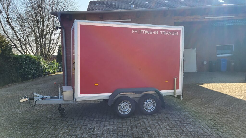 Der Anhänger dient zur Aufnahme von Rollcontainern die mit Ersatzschläuchen, Schaummittel, Ölbindemittel und unserem Nasssauger bestückt sind. Die wir je nach Einsatzlage auf dem Anhänger verstauen können.