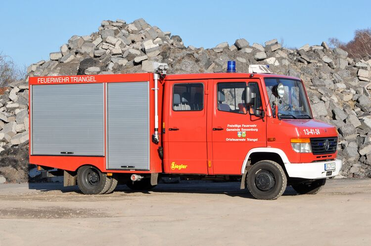 Ein kleines Allround- Fahrzeug. Es rückt mit einem Gruppenführer, einem Maschinisten und vier Atemschutzgeräteträger aus.