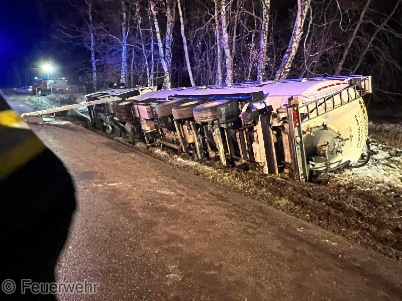 LKW rutscht in Straßengraben